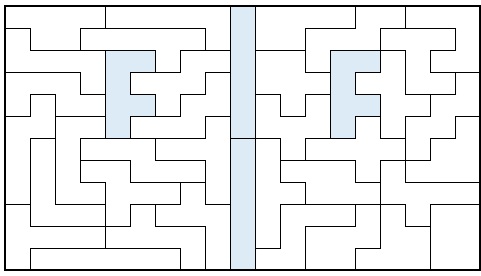 ヘキソミノの異なる35種類のすべてのピースを使用してできる最もシンプルな形が11×19 の長方形から一箇所突起が出た形で、その形のケースに入ったセットが以前テンヨーより「プラパズルNo.600」として販売されていました。商品にはすべてのピースをケースにもどす解答は10 億通り以上と書かれていましたが、現在では200 億通り以上の解答があることがわかっています。